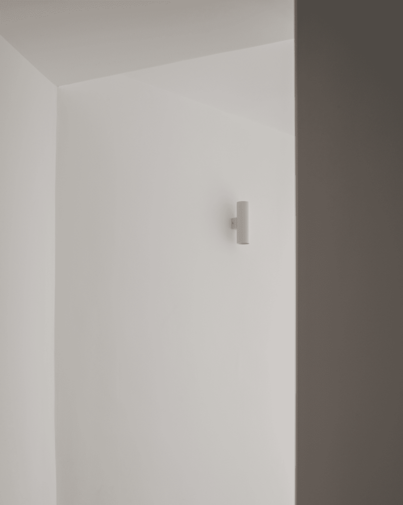 El estudio de la iluminación artificial ha servido para dotar de personalidad a estancias con menos carácter, como en el pasillo, donde genera un ritmo cálido en sus blancas paredes.
