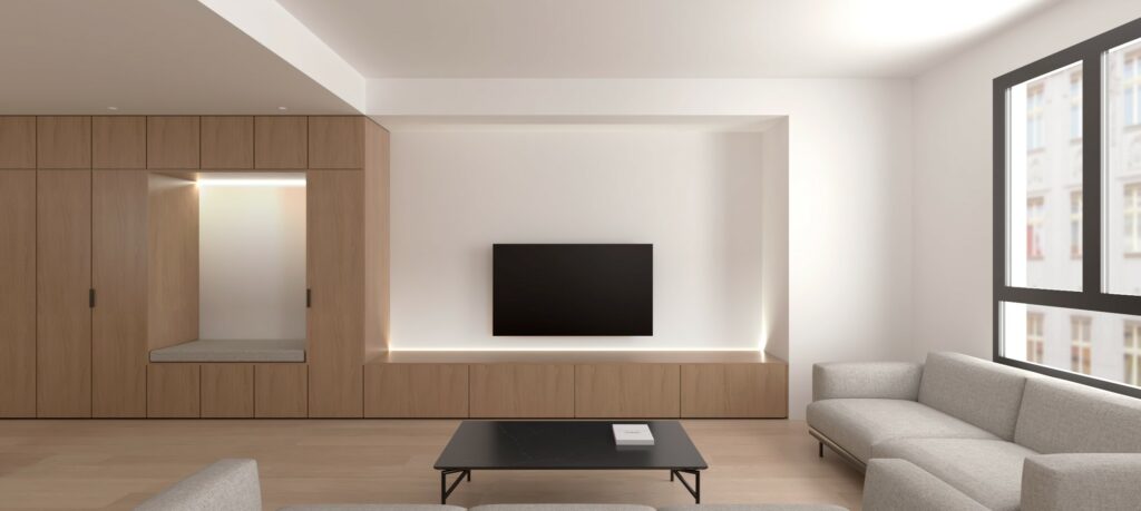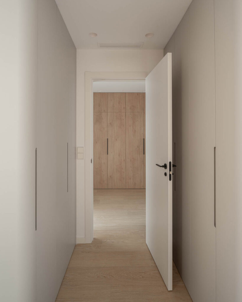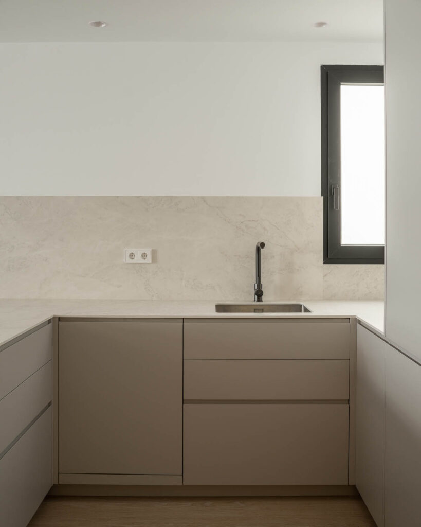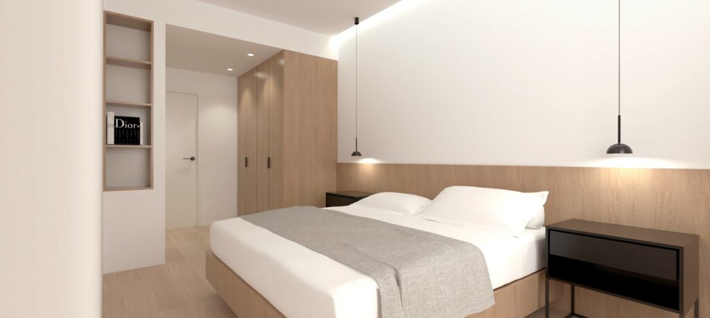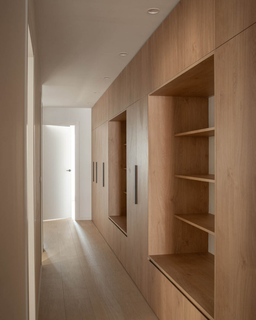 Respetando la ubicación de todas las estancias y el número de estas, se busca realizar intervenciones puntuales en la distribución; como abrir la cocina al comedor-salón acortanado el largo pasillo en el proceso y unificando el espacio de día, lo que proporcionará la luz natural en todas las estancias y una sensación de mucha más amplitud.